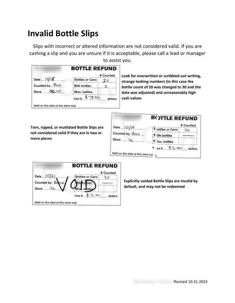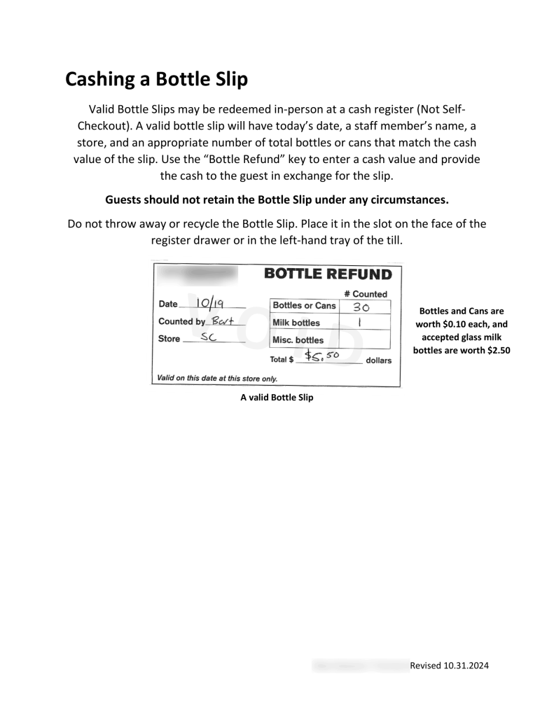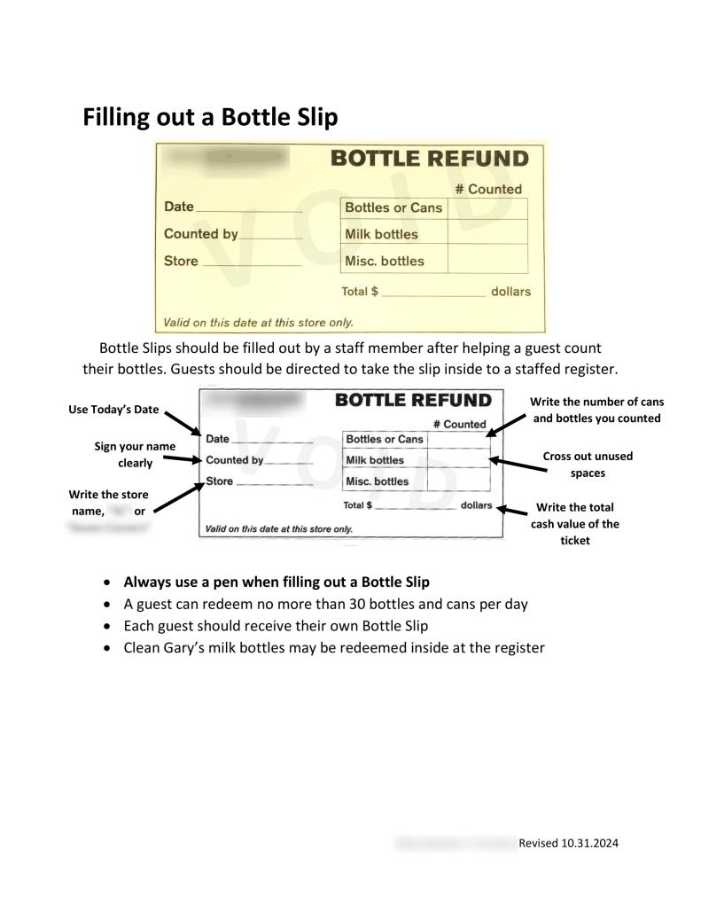1/3 – Guide for a major policy revision I spearheaded to start using paper slips for bottle returns