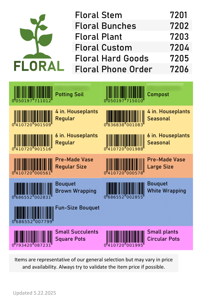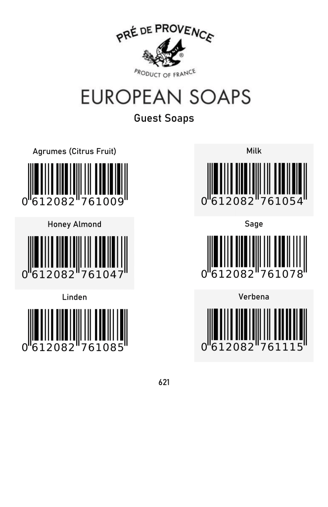 Scan page for soaps, designed to fit in a small binder present at each checkout stand